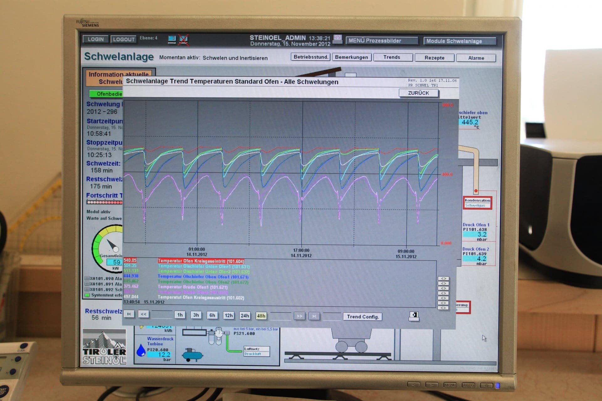 Es bedurfte also nicht vieler Überlegungen und die Konstruktionspläne waren schnell erstellt. Alles ging sehr schnell, so dass die Schwelanlage im Sommer 2011 auf vollelektrischen Betrieb umgerüstet werden konnte. Bei den ersten Testläufen wurden alle Erwartungen an das umgebaute System erfüllt und teilweise sogar übertroffen. Mittlerweile konnte der Wirkungsgrad der Schwelanlage von ca. 40 % mit den alten Schachtöfen auf über 85 % mit der modernen Schwelanlage gesteigert werden. Dies hat zur Folge, dass für die gleiche Menge TIROLER STEINÖL heute nur mehr die Hälfte an Ölschiefer benötigt wird – im Vergleich zu früheren Verfahren. Das schont die Ressourcen und minimiert den notwendigen Eingriff in die Natur.